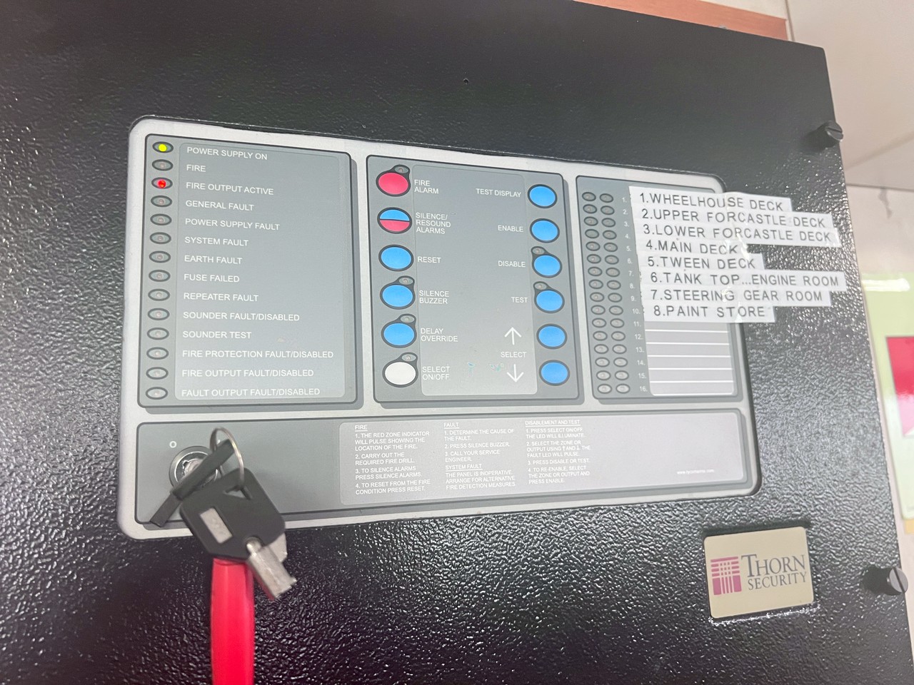 TC Uranus. Fire Alarm Control System (Thorn 1216C) — Job Completion Location: Prateep Jetty, Songkhla. Scope: Troubleshoot the Thorn 1216C fire alarm control panel and verify full system functionality. Action: MS team boarded the vessel, diagnosed and rectified faults, reset the panel, and tested detectors/MCPs, sounders, zones, and power supply. Result: All fire alarm functions operate normally and meet vessel requirements. Job completed..