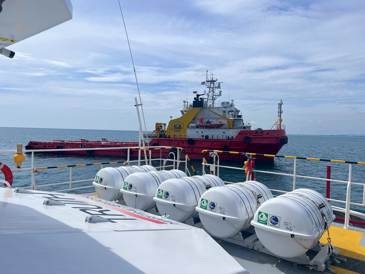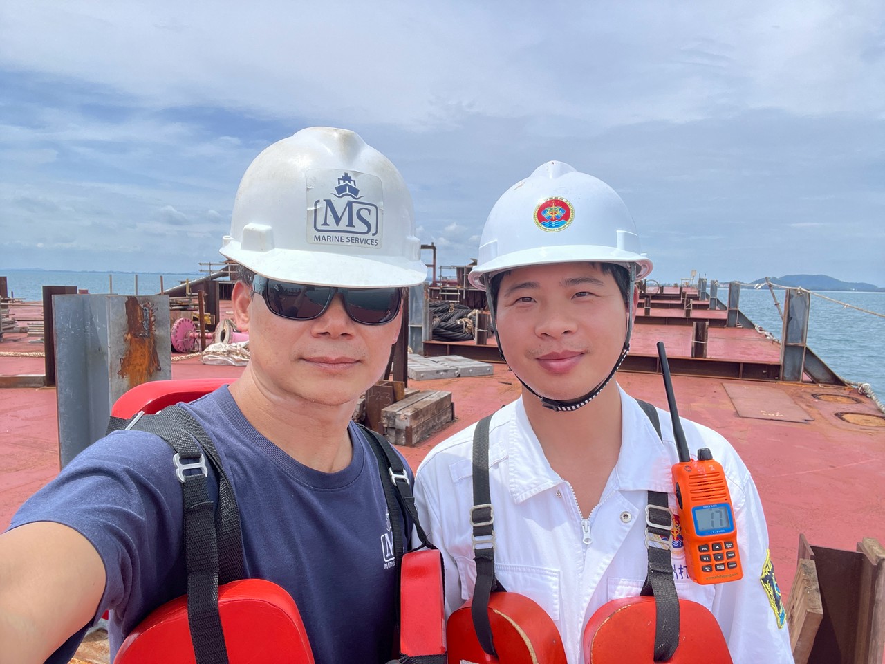 COSCO and Guangzhou Salvage.Marine Services (MS) was engaged by COSCO and Guangzhou Salvage to survey and assess damage on the Hua Tai barge. Our team traveled by high-speed crew boat (TMS Chana) to the vessel at the Songkhla anchorage. Thanks to the crews’ cooperation, the survey was completed smoothly and without incident. MS is ready to proceed with the repairs in line with the client’s requirements.