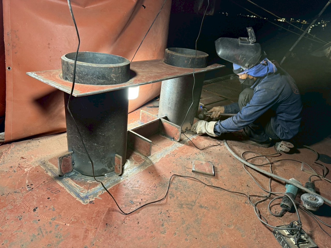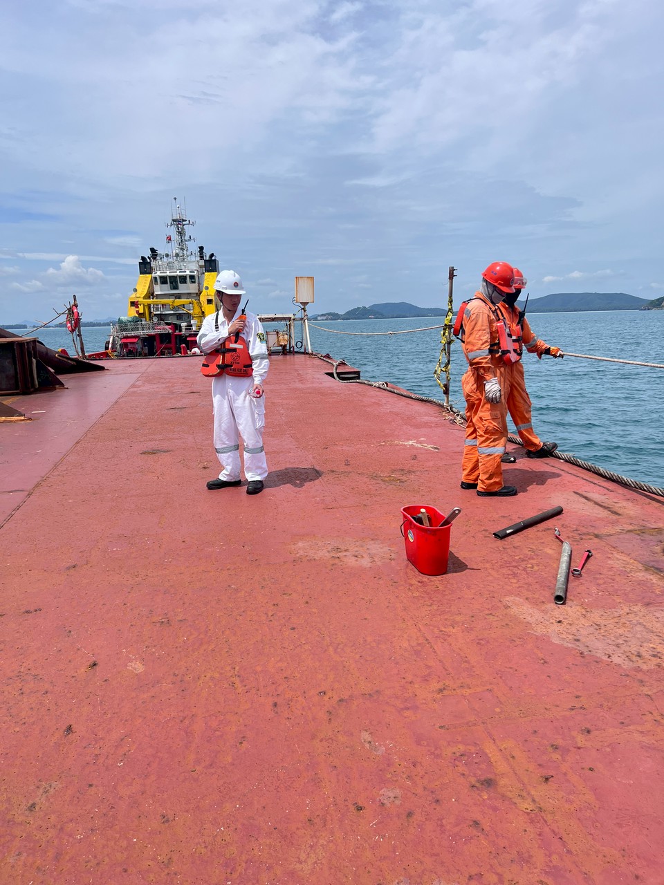 Hua Tai Barge (CGS).The class-certified welding work has been completed, UT inspection is conducted., and the required bollard fabrication and installation were also successfully finished. Our skilled MS welding team delivered beyond expectations, achieving class certification and approval ahead of schedule.