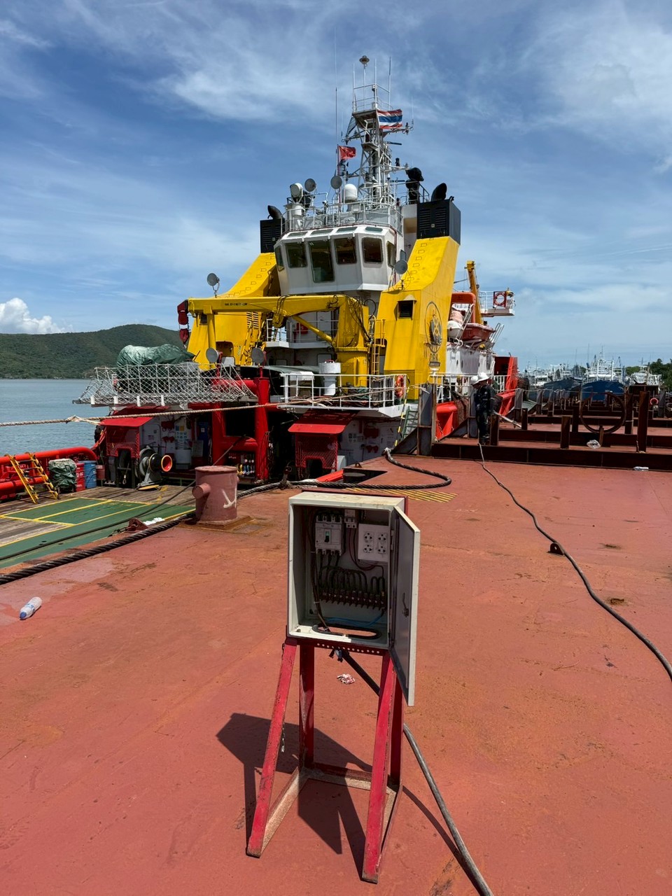 Uniexpress 10 (UE.10).Real-Time Flow Meter System Upgrade. The MS team upgraded the real-time flow meter system by removing the PLC modules and installing IO cards to monitor engine speed. This upgrade provides improved reliability and easier maintenance. The work was carried out while the vessel was in dry dock at Unithai Shipyard, Songkhla Province.