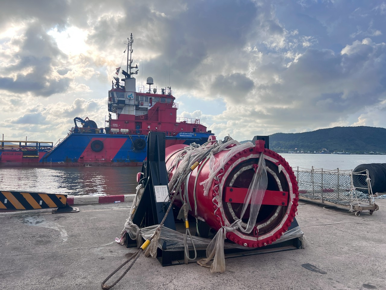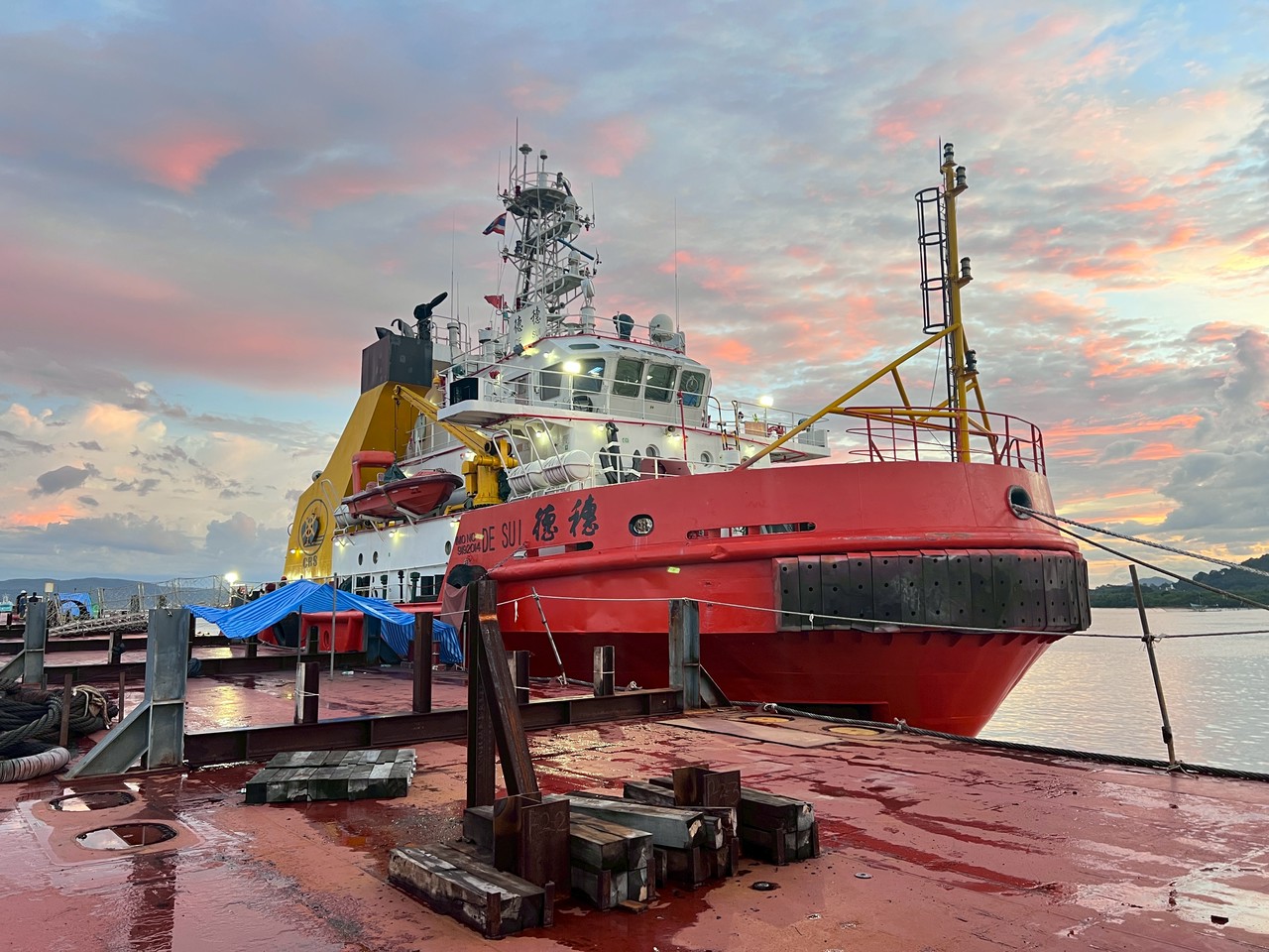COSCO and Guangzhou Salvage.Marine Services (MS) was engaged by COSCO and Guangzhou Salvage to survey and assess damage on the Hua Tai barge. Our team traveled by high-speed crew boat (TMS Chana) to the vessel at the Songkhla anchorage. Thanks to the crews’ cooperation, the survey was completed smoothly and without incident. MS is ready to proceed with the repairs in line with the client’s requirements.