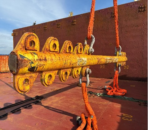 BBC LEER.One more loading stowage and lashing survey of 2 x Ethane storage bullets and general cargo packages onboard M.V. BBC LEER.