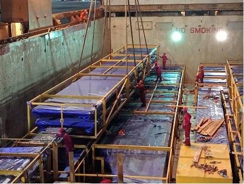 Pacific Innovation : cargos loading survey. The cargo loading survey is started today, some of heavy lifts (above 100 tons each) will be done tomorrow.