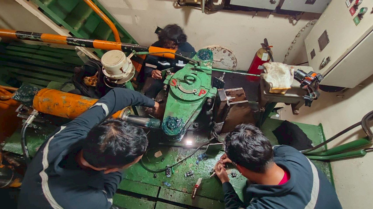PP 9 – Tanker.At the SKL anchorage area, the MS team boarded the vessel via pilot boat to address three issues while the vessel achorage: the generator control system, the gearbox actuator, and most importantly, the steering gear control system. Our team covered both mechanical and electrical scopes of work, and all jobs were successfully completed on 15 December 2025.