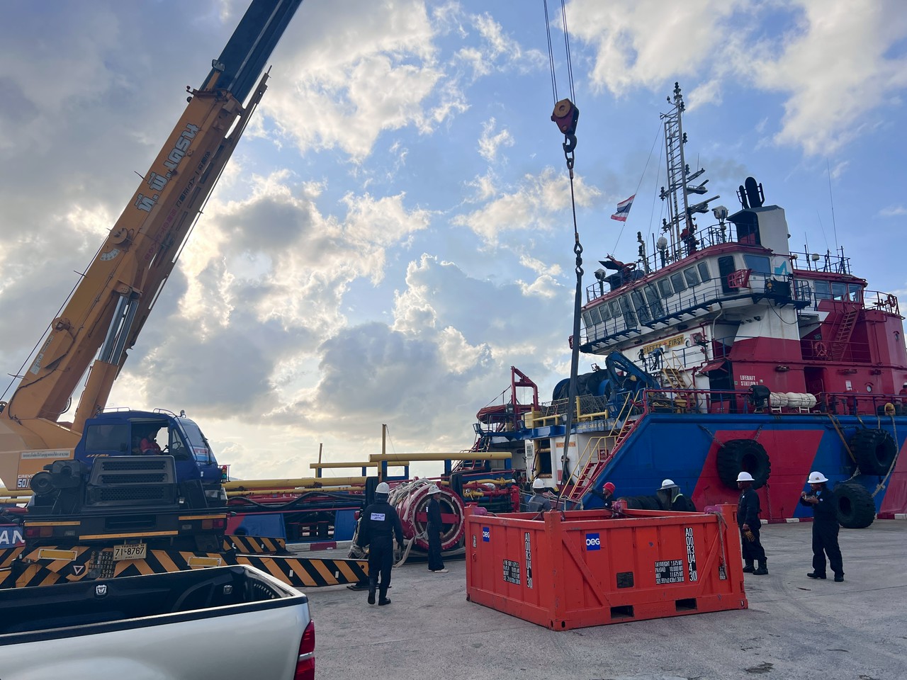 TC Mermaid, Besides the engineering, repairing and maintenance jobs.recently we are requested to supply full provision to the vessel to support full operations in the gulf of Thailand. Yesterday we supplied for TC Mermaid.
